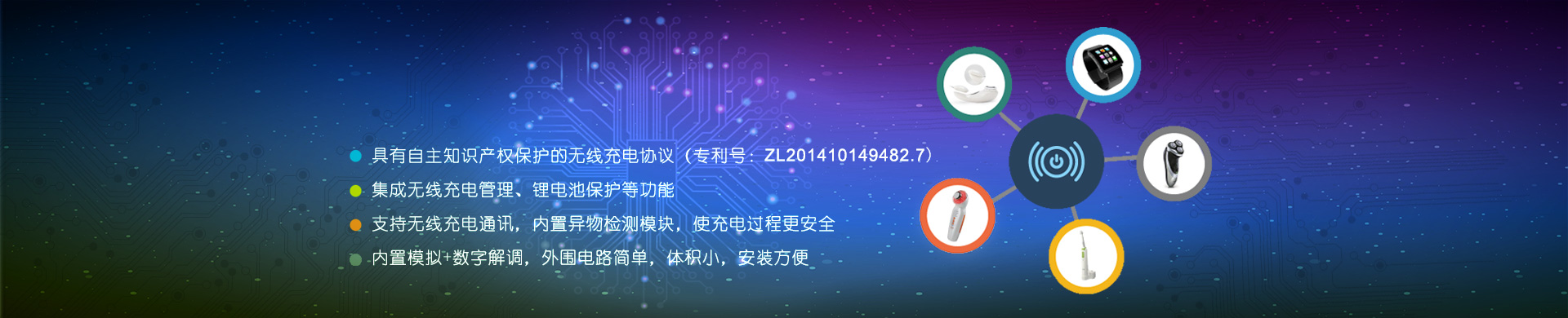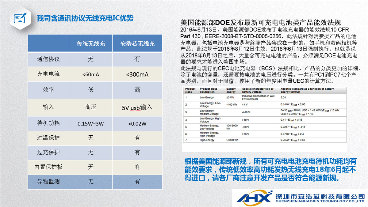 我司無線充電IC方案具有體高、成本優(yōu)勢明顯、應(yīng)用電路簡單等特點,發(fā)射和接收IC集成度高,帶有通訊協(xié)議,具有異物識別、過充保護、過放保護、短路保護等功能。